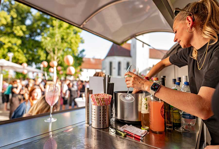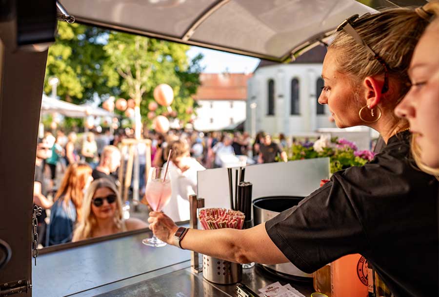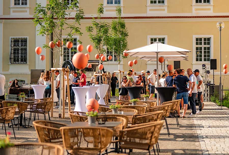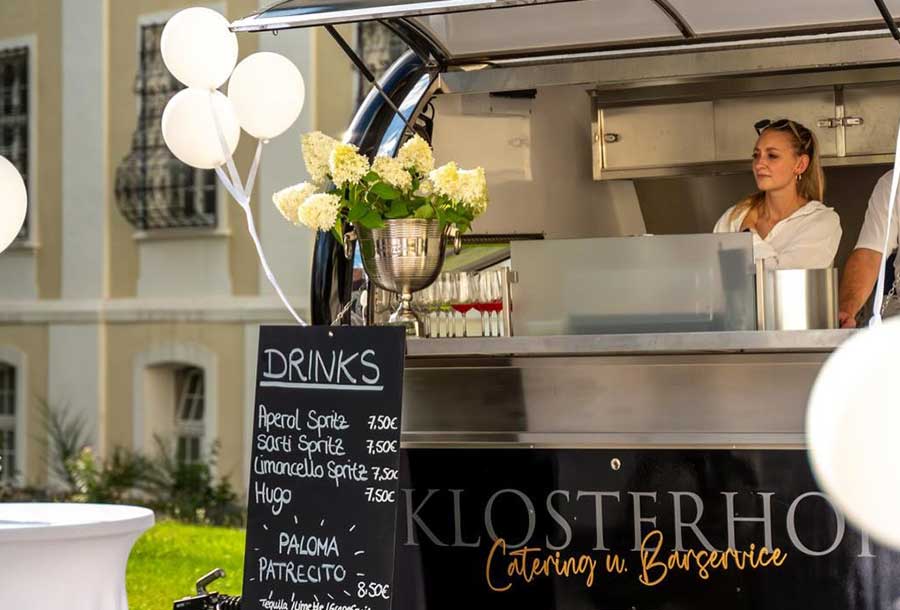 Denn Niklas Lotter und das Klosterhof-Team bieten Full-Service aus einer Hand. Das bedeutet: keine zusätzlichen Mietkosten für die Location. Wer z. B. seine Hochzeit in der Kirche direkt nebenan feiert, kann im Innenhof des Café Gustav direkt zum Sektempfang mit dem Cocktailwagen übergehen.