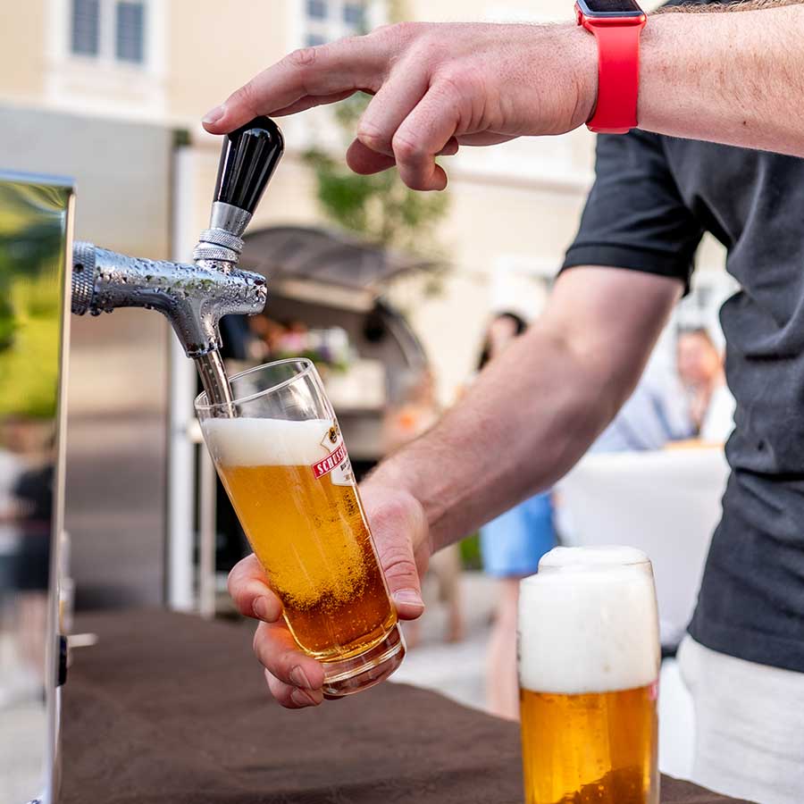Das Gustav-Team übernimmt auf Wunsch das komplette Event-Paket: von Catering und Hochzeitstorte bis hin zu DJ, Licht- und Tontechnik – indoor wie outdoor.